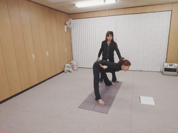 バレーを習っていただけに、体幹力があり、ポーズは爪先まで意識できる←ヨガ指導者に向いていると感じました。