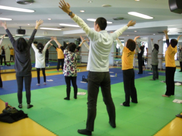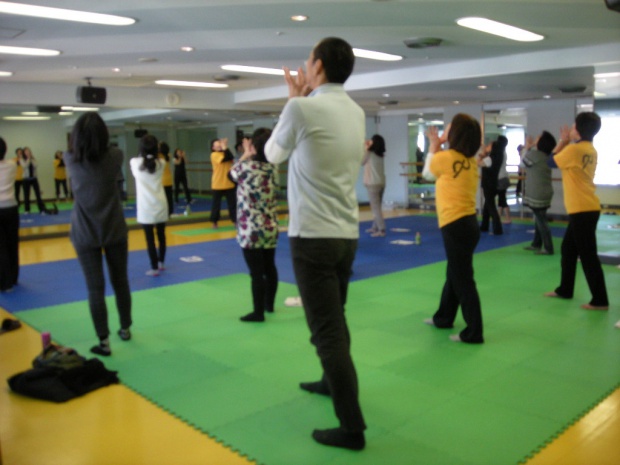 2 部では、セロトニン神経について知っていただき、毎日の生活の中に取り入れられるセロトニンヨガを紹介しました。参加者の方は、みなさんヨガの経験のある 方々でしたが、さらにヨガの効果や良さを深く知り、感じていただけるよう努めました。身体を動かしているうちに、笑顔やリラックスした表情が増えてきたよ うに思います。参加者の方々のこれからの健康生活にセロトニンヨガが役立つこと、そして、家族や身近な人の健康生活にまで広がって行くことを願っています。