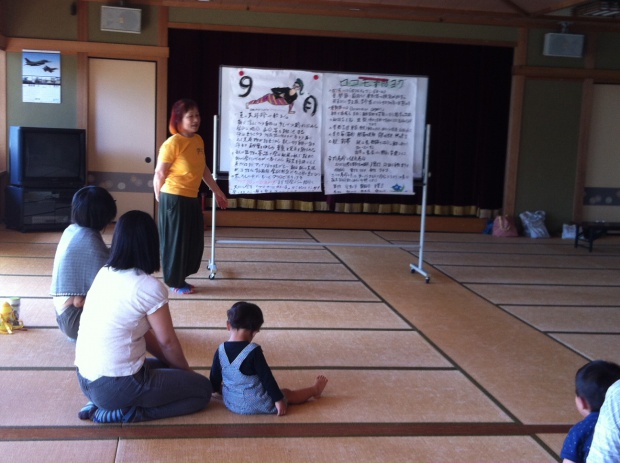 子供中心の動き、さらにお母さん達の動き。親子で動物の動き。